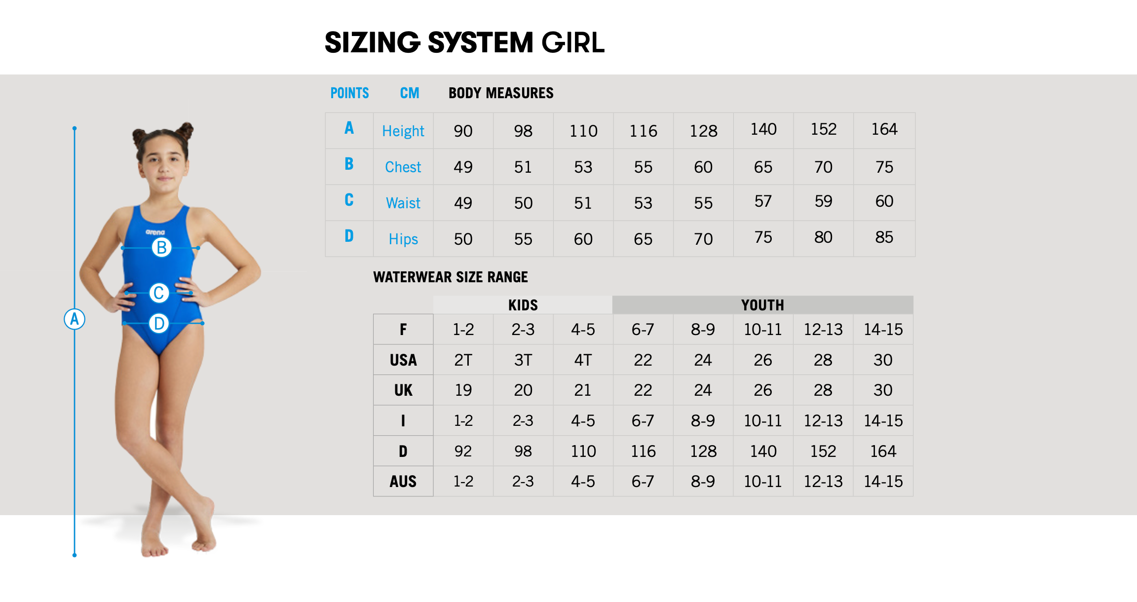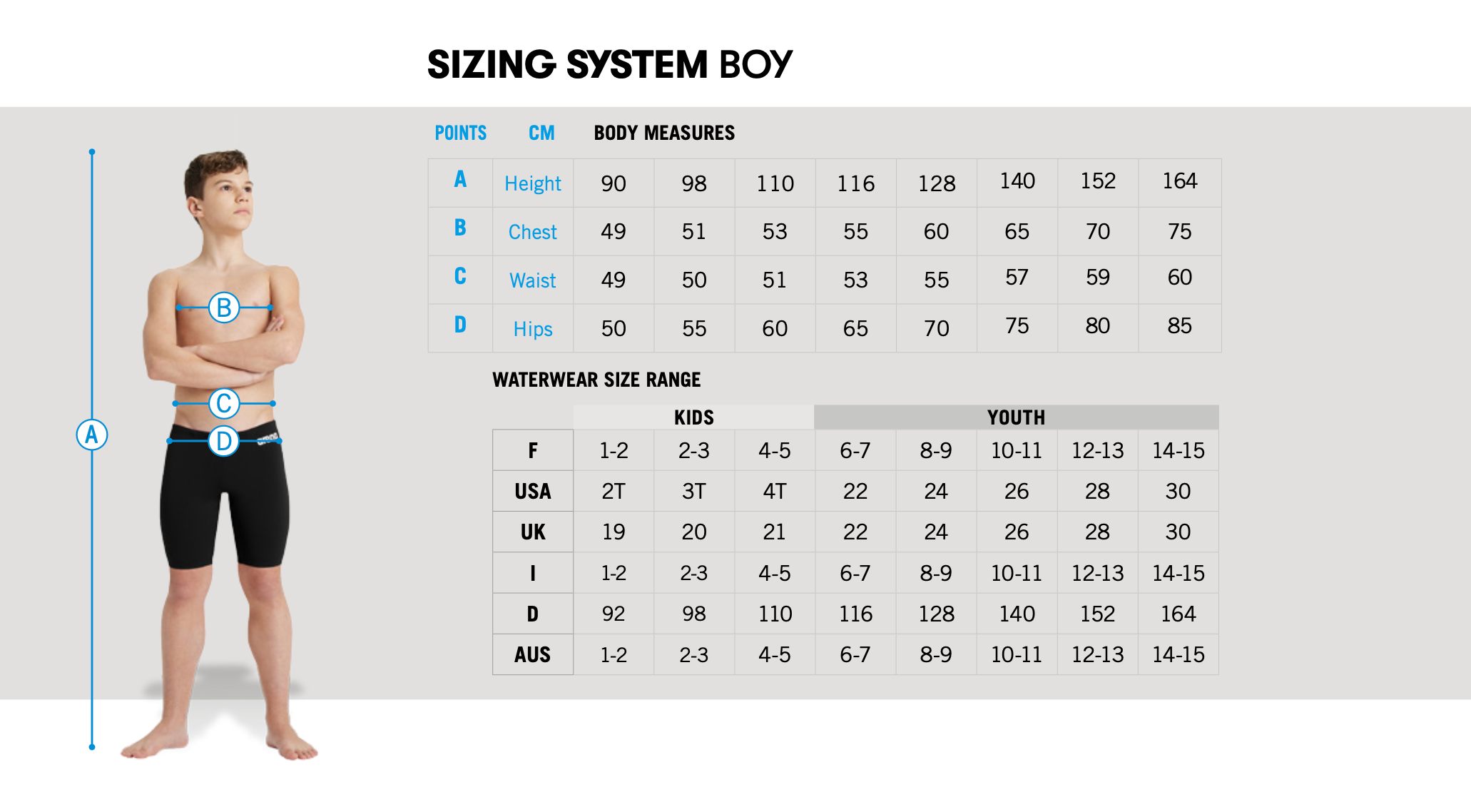 Our website shows UK sizing - find it on table and compare to age or measurement (vertically)