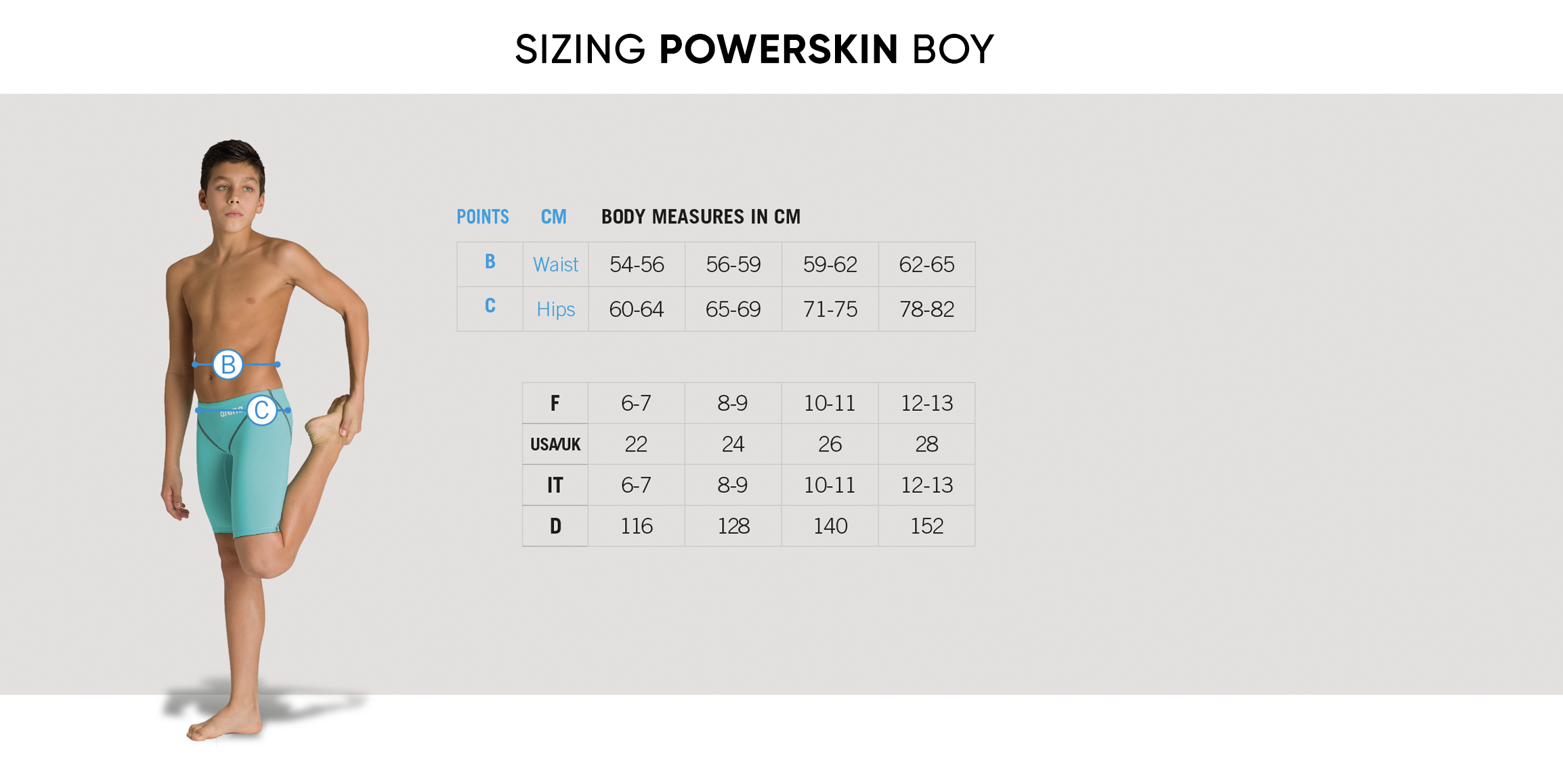 Our website shows UK sizing - find it on table and compare to age or measurement AUS (vertically)